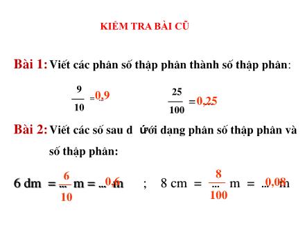 Tóm tắt nội dung tài liệu: Bài giảng Toán Lớp 5 - Tiết 33: Khái niệm số thập phân (Tiếp theo)